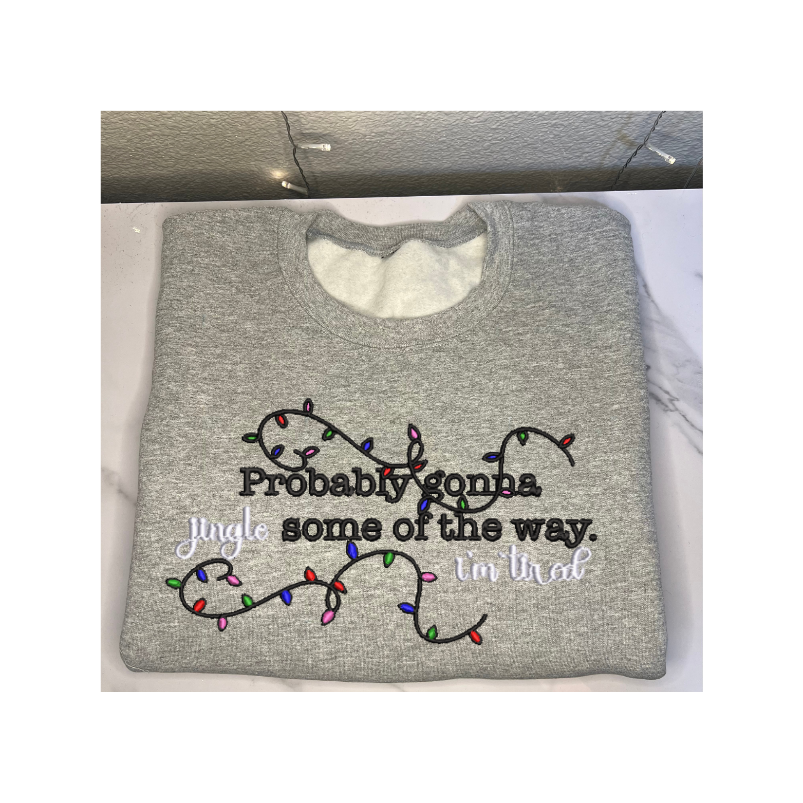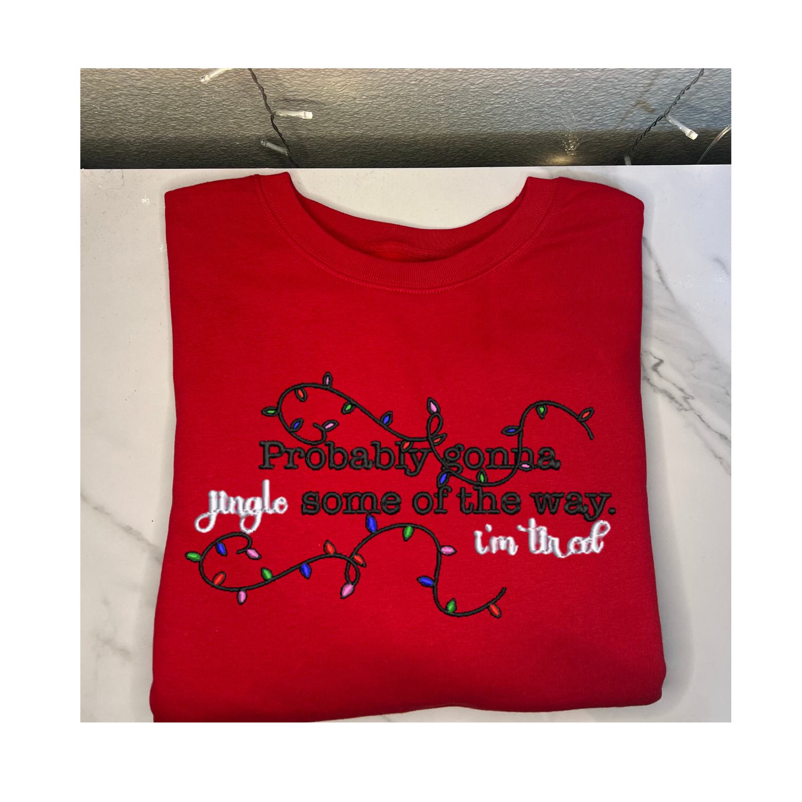'Probably gonna Jingle some of the way I'm Tired' Embroidered Sweatshirt